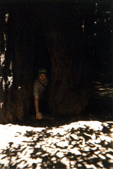 This picture was taken on our hike at Pfeiffer State Park (where we are going next month). Brian is hiding inside the stump of a redwood tree!![]()