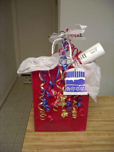 He said I'd probably have a surprise waiting for him at dinner tonight (he's always expecting a party-- I never let him down by NOT giving him one!). I don't think he'll be able to eat dinner tonight!!