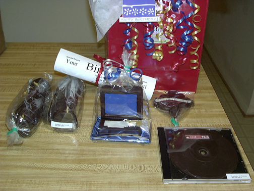 I should mention that Patty made up a nicely bagged presentation along with a scroll of what happened in history on Brian's birth date. Yes, Honey, I'm afraid that all of your co-workers no know your age, too!!! I would HIGHLY recommend Patty and Creations by Patricia for all of your CHOCOLATE needs!!!!