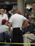 When we got nearer to our next gate (58), we noticed that Gate 54B was roped off with Police tape ("POLICE LINE DO NOT CROSS") and the first thought for me was "Oh, great, someone got shot!" No, this was not a good thing-- I had hoped that the airport would be immune from such activity. As it turns out, it was immune (at least for this incident) since it was, in fact, the location chosen by the crew of "West Wing" to tape an episode. From the looks of it, we thought the work was done and the crews that were standing around (See, its not just CalTrans!) were waiting to haul off the equipment in one fell swoop. Not so, apparently! After about a half hour, a couple moved over to the seats in front of us complaining that the crew told them they had to move; they were going to start shooting and needed the non-extra extras (read: non-union) to move out of the way. That's when we found out that it was the West Wing that was being shot there and that they weren't finished. At the time, I remarked to Brian that I thought that was the television show that Martin Sheen was working these days. Brian thought that he played "President Bartlett" so we wouldn't see him since anyone portraying the President of these United States doesn't use the terminals at airports. As I told Brian, "If I can't see Martin Sheen, I don't care what they do over there" and I settled back down to continue reading my book ("White Oleander").