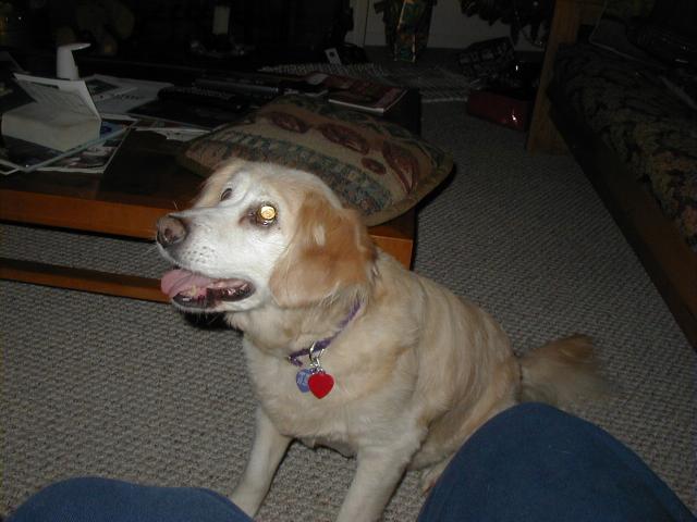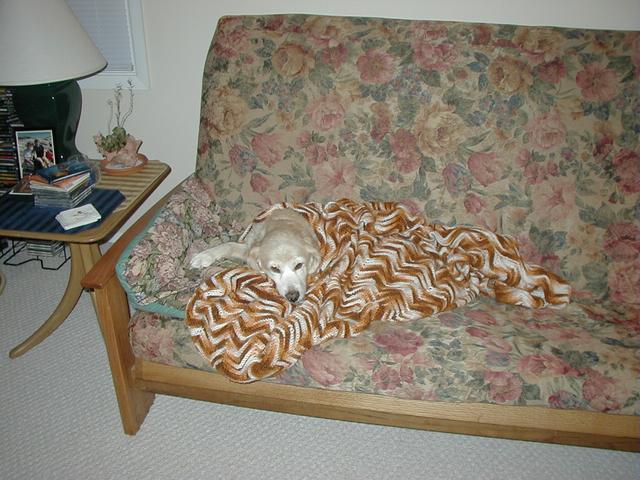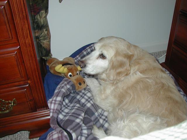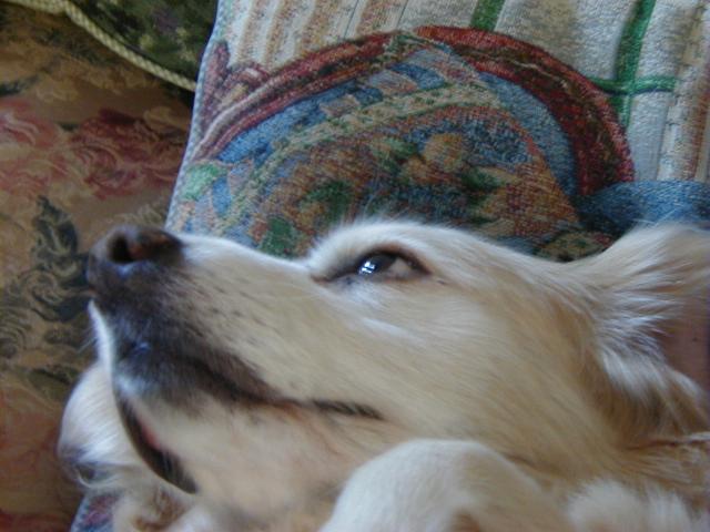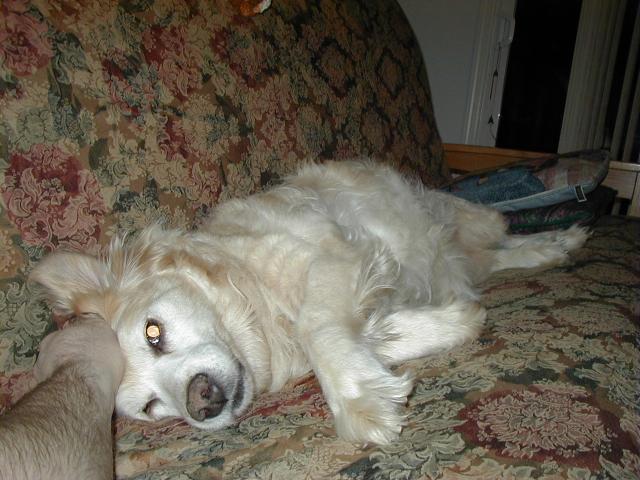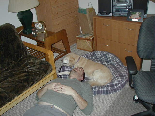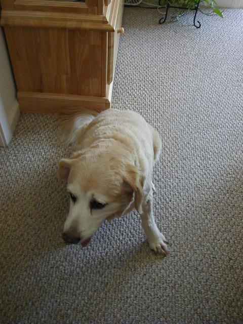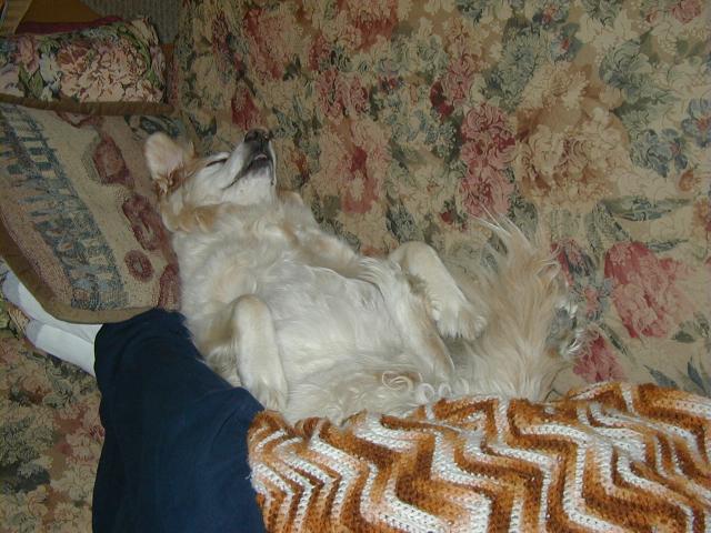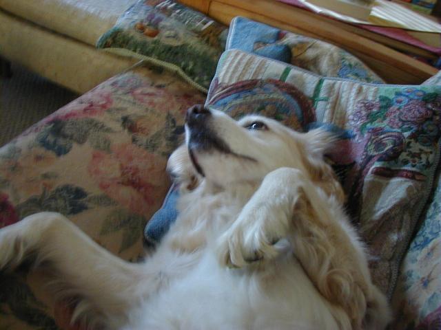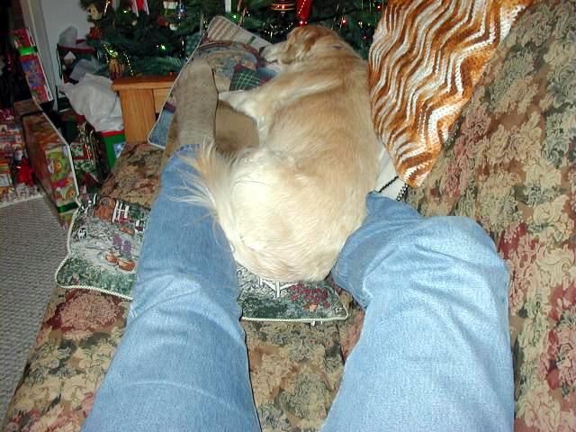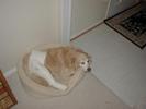So let me tell you what's been happening to me since I last talked with you: Mommy and Daddy moved!!!! They drove their cars (and a strange one that didn't smell like me or them) for six days and we stayed in weird places every night that didn't smell like us and then we finally got to a new place that didn't smell like us either and they took all of the stuff out of the cars so it started to smell like us. This new place has a mountain in the middle of it!!! At least it looks like a mountain-- it has carpet on it though and Mommy and Daddy go up there every night to go to sleep and sometimes during the day and evening to play on their computers. I can't make it up the mountain though cuz it is very steep and hard to climb-- I think I'm going to slip. Then, this biigggggg truck pulled up and all of these nice people helped Mommy and Daddy put the stuff in the house but then there was no place left for me to just lay around cuz there were boxes every where!!!