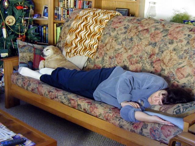 a bit and then, we fell asleep at opposite ends of the sofa! How