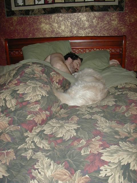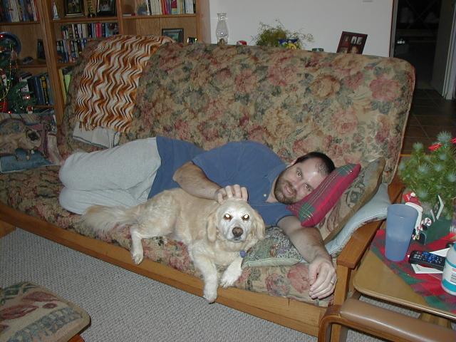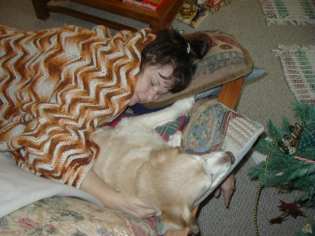 Here I am trying to warm my Daddy's feet-- he's got really cold feet!! |