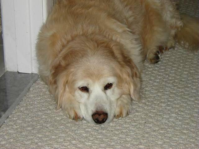 If you've been to my site recently, you know what's been happening. Poor Sally got a little too frisky for her own good and over-extended her right knee causing a tear in the cranial cruciate ligament. That was on Tuesday (10/8) and on Wednesday, October 9, she had surgery. Today, Sally came home but she is definitely not a happy puppy. Our poor Baby Girl is just beside herself with unhappiness and moping about her dillema. I can't say as I blame her-- I remember what it was like for me, not too long ago!