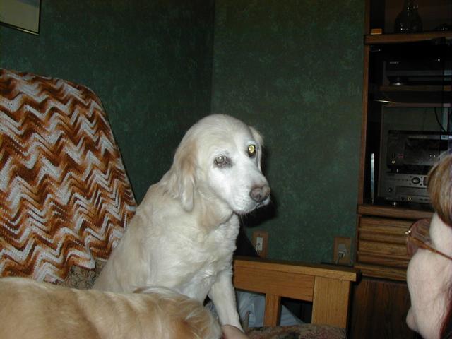 That's okay-- for the most part, she stays downstairs and sleeps during the day and then again, we'll bring her up for extended visits with us during the day sometimes, too. The problem is when its early evening and, as you know, dogs are extreme creatures of habit. She is used to snuggles, cuddles, and treats during the early hours of the evening so if she's upstairs, she expects these things to still happen, going up and down the stairs to make them happen. Nope, that is not going to be happening with her vision problems!!